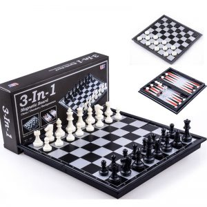 Magnetic & Foldable Game: 3-in-1, Chess/Checkers/Backgammon 10”