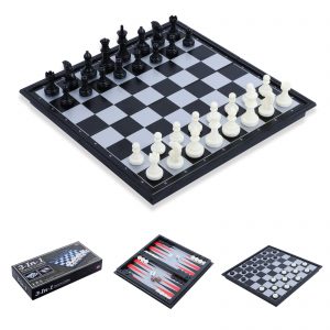 Magnetic & Foldable Game: 3-in-1, Chess/Checkers/Backgammon 10”