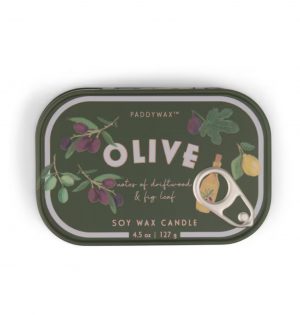 Paddywax – Bistro 4.5oz. Olive Printed Tin Candle: Fig & Olive