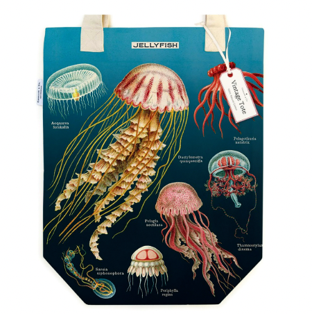 These 100% natural cotton heavyweight tote bags feature an interior pocket and beloved imagery from the Cavallini archives. They make the perfect carry-all and pair perfectly with the Vintage Pouch. This particular design features illustrations of gorgeous ethereal animals from the sea––just don’t get too close to those tentacles. 13” x 17”