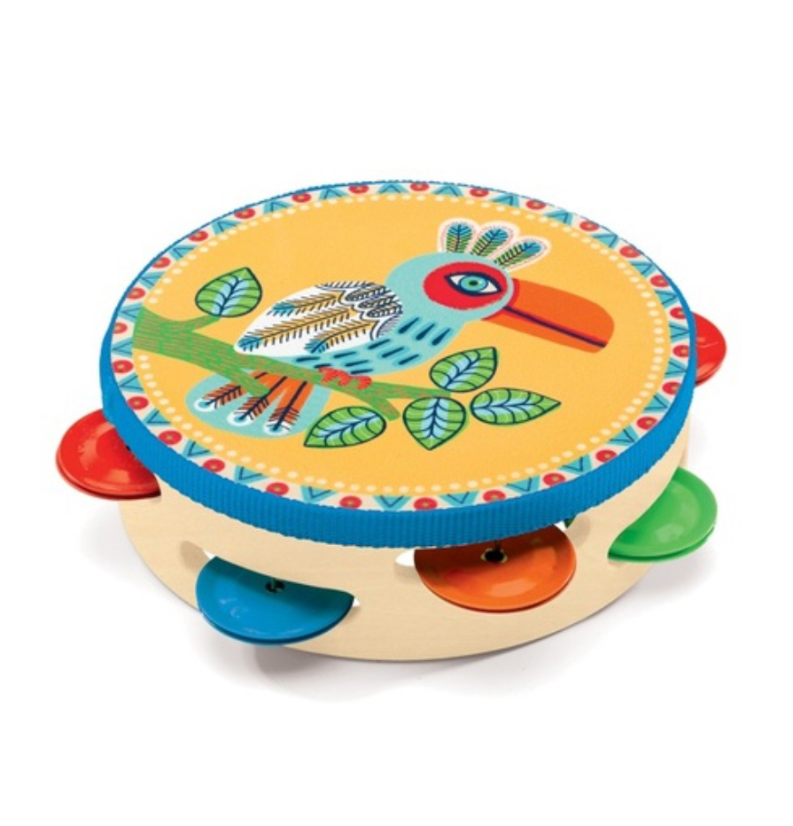 Make music with this multi-coloured Animambo tambourine. Featuring a wooden base with a beautifully detailed bird design, this tambourine makes a great first time instrument.