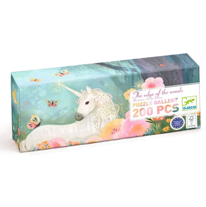 The Djeco The Edge of the Woods 200-piece Gallery Puzzle invites children into a whimsical and imaginative world, illustrated in a unique panoramic format. Bursting with detail, this beautifully crafted puzzle lets little ones explore a magical forest scene filled with surprises around every corner.