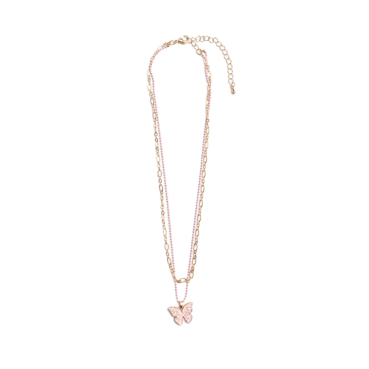 This charming necklace features colorful beads and a butterfly pendant that adds a playful sparkle to any outfit.