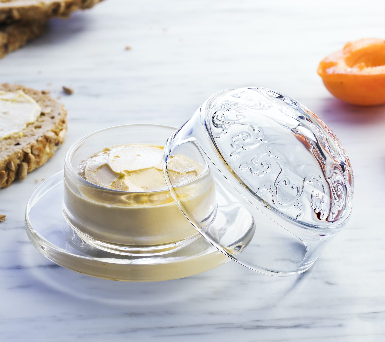 This chic versatile little dish keeps butter or jam fresh and spreadable at the breakfast table.