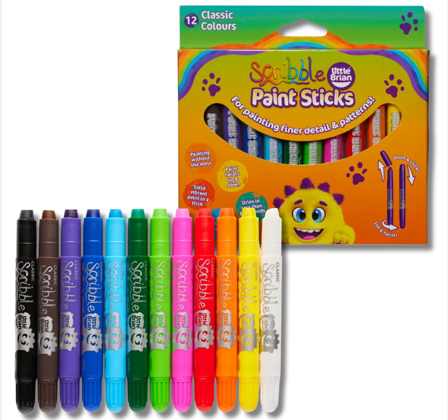 Twin Tip, just Flip! Introducing double ended Paint Sticks. The first double ended Paint Sticks product worldwide. Twice the colours, double the fun. Includes 6 Paint Sticks, 12 colours – 2 colours per paint stick.