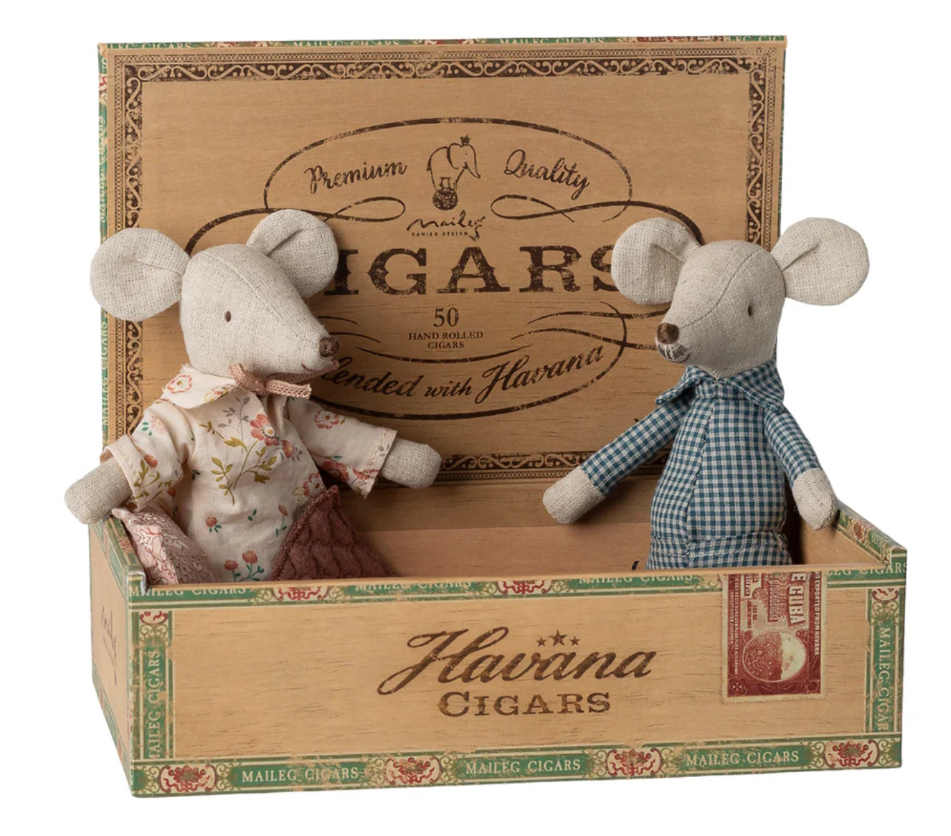 Maileg – Grandma and Grandpa Mice in Cigarbox (2026)
