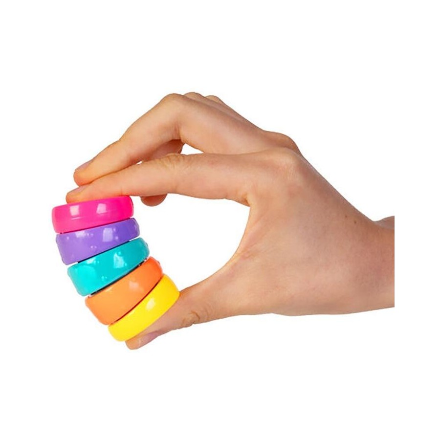 Get fidget fun at your fingertips with Spin Stack! This interactive toy features five colourful discs that spin independently while staying connected. With a comfortable thumb indent and a mix of smooth and textured surfaces, it’s as satisfying to touch as it is to watch. It’s a spinning sensation!