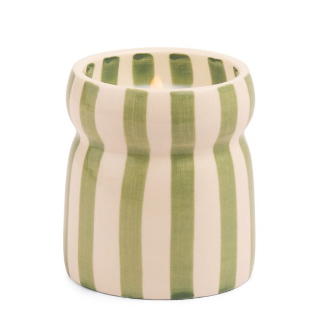 Paddywax – Cabana: Sage Striped Ceramic Candle ‘Bora Bora’