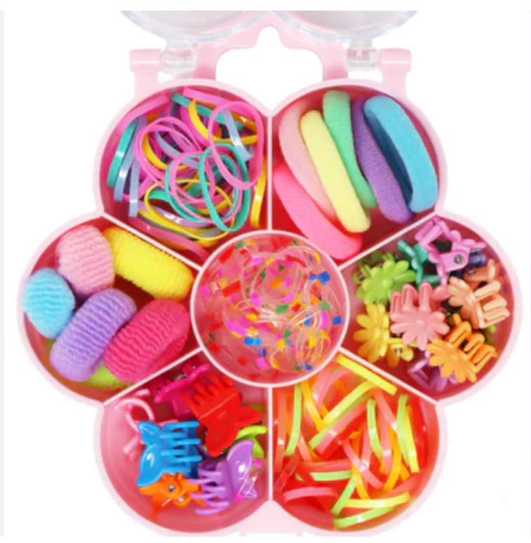 Pink Poppy’s Flower Hair Accessory Set is a fun and playful way to cater for any occasion! Packed in a cute flower-shaped gift box, the set includes a colourful range of elastics and claw clips. Ideal for gifting, this trendy, fashionable accessory set is crafted from high-quality materials.