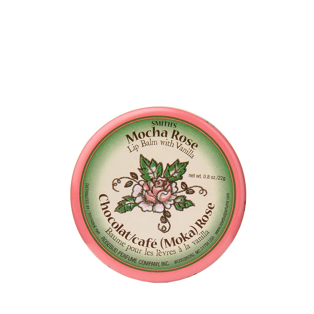Rosebud’s Mocha Rose Lip Balm with vanilla is an aromatic blend of creamy mocha and rich chocolate accented with a hint of vanilla and rose. The old world coffee shop flavours and essential oils in Mocha Rose are enriched with shea butter and vitamin E. This emollient lip balm provides lustre and dewy moisture. You may wish to use this flavourful and supple balm to enrich parched skin.