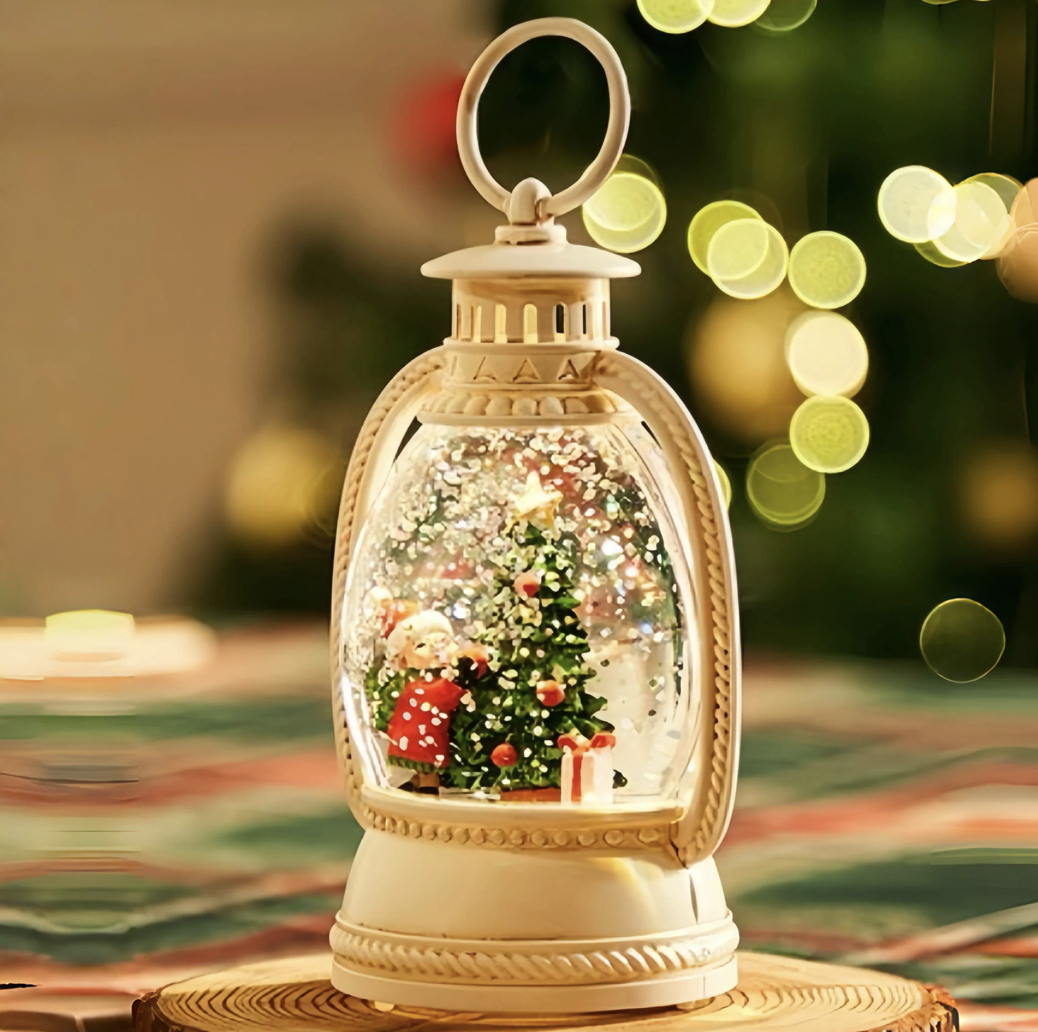 Snowing Mini Oil Lantern w/ Kids & Xmas Tree