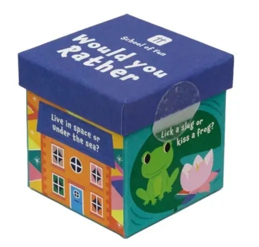 This fun game of Would You Rather will make everyone, young and old, wonder whether they would rather be a Viking or a Roman, or would they rather be a film star or a pop star. Enjoy fun, silly questions that will start a hilarious debate when players must explain why they would rather have stripes instead of spots. A great family game everyone can enjoy.
