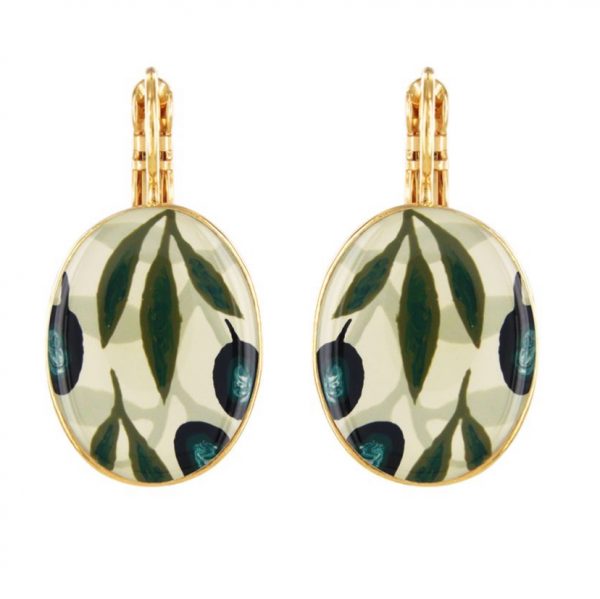 TARATATA – Olive: Green/White Leaf Oval Earrings