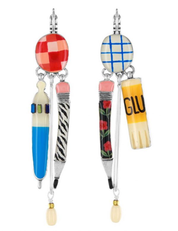 Composition : Etain, laiton, résines colorées dont les motifs sont peints à la main, hématite teintée, perles en verre