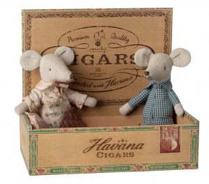 Maileg – Grandma and Grandpa Mice in Cigarbox