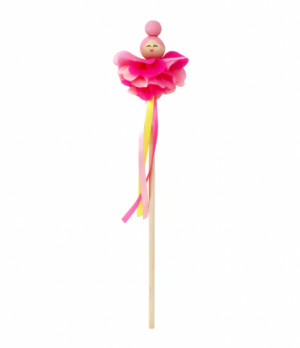 Pink Poppy – Hand Painted Wooden Bead Ballerina Tulle Wand (Colours Assorted)