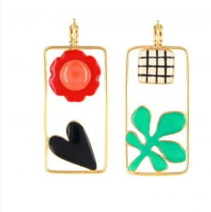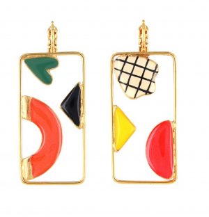 TARATATA – Arty: Pink Rainbow Gold Rectangle Earrings